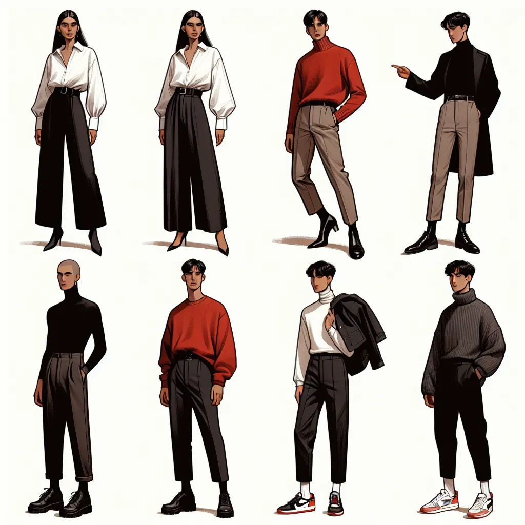 - Обувь: Выбирайте обувь в зависимости от стиля: туфли для делового, кроссовки для повседневного, босоножки для вечернего.